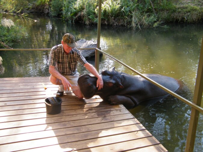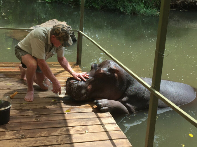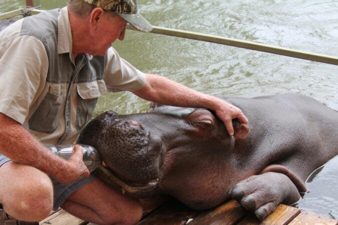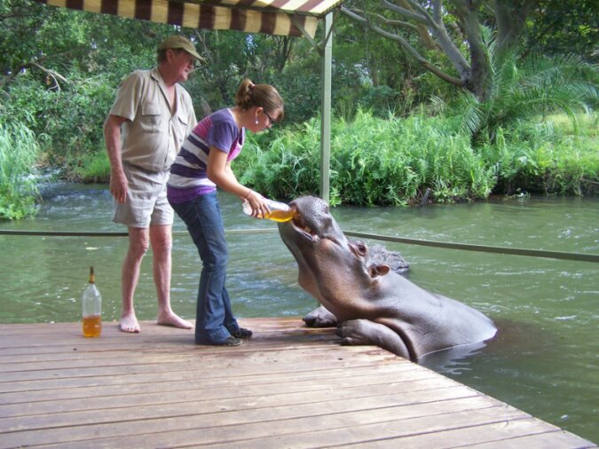 Wszystko zaczęło się około 18 lat temu w Afryce Południowej. Na brzegu rzeki leżał mały hipopotam. Został znaleziony przez Tony'ego Jouberta. Nigdzie nie było matki dziecka - być może zmarła w czasie poważnej powodzi, która miała miejsce w tym czasie na tym obszarze. Mężczyzna wziął zwierzę, ponieważ nie dałoby rady przetrwać samotnie...