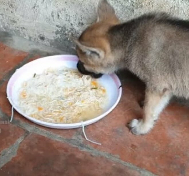 Chłopak zabrał szczeniaka do domu. Opowiadał później, że nakarmił małego makaronem. Najwyraźniej psu to się spodobało, chociaż nie była to karma do której był on przyzwyczajony.