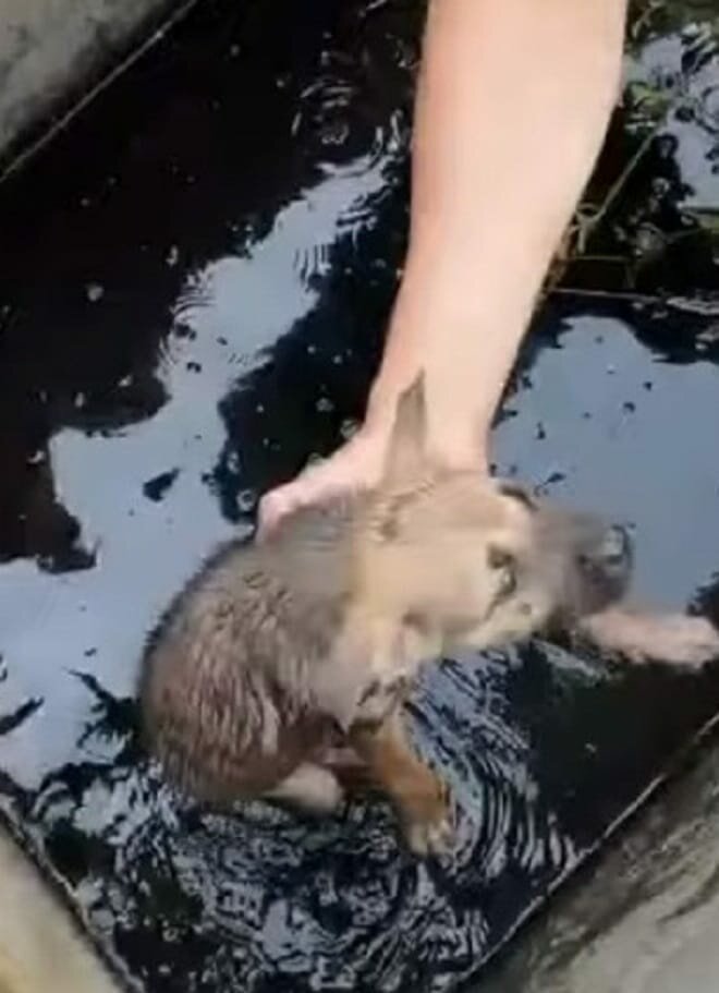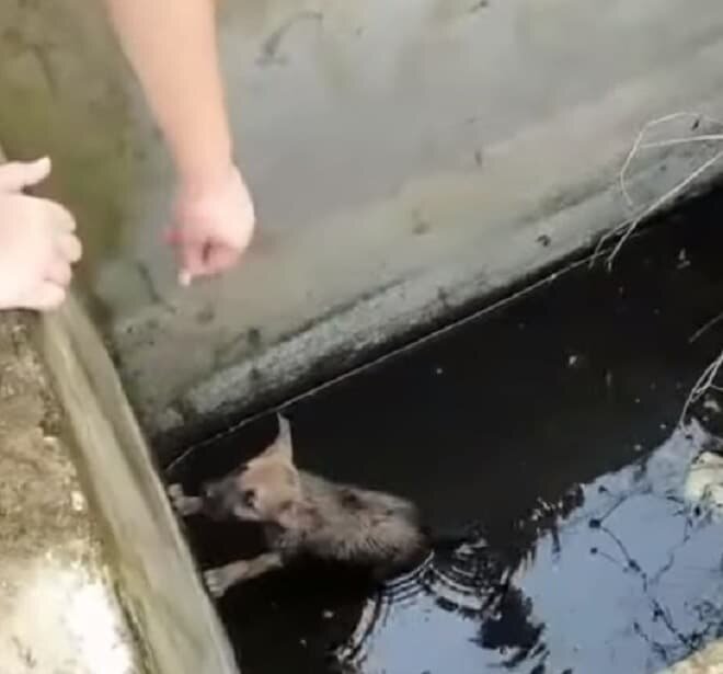 Kiedy dzieciaki zobaczyły młodego chłopaka, były bardzo szczęśliwi. Chłopcy zdali sobie sprawę, że szczeniak zostanie uratowany. Nieznajomy ostrożnie stanął jedną nogą w wodzie i już po chwili wyciągał rękę do szczeniaka. Przerażone maleństwo, które tylko cudem jeszcze żyło i wciąż unosiło się na powierzchni, w końcu znalazło się w jego pewnych i silnych rękach.