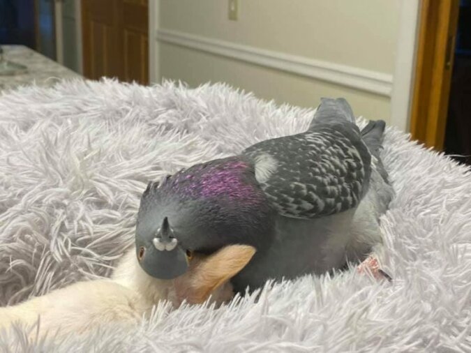 Wtedy Sue opiekowała się psem, a gołąb siadział obok kanapy. Potem Rogers zastanawiała się, czy nie położyć szczeniaka obok gołębia. Tak zrobiła. Jednak uważnie obserwowała, co się wydarzy. Nikt nie wiedział, jak zachowują się tak różne zwierzęta.