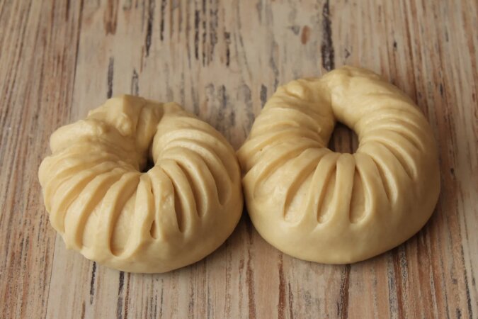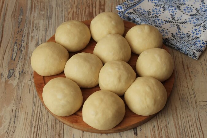 Gotowe ciasto dzielimy na 12 części i zaokrąglamy je.