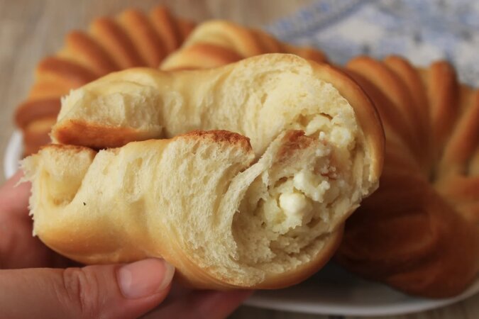 Minęło półtorej godziny, ciasto bardzo dobrze urosło. Teraz możemy przygotować nadzienie z twarogu i uformować bułki.