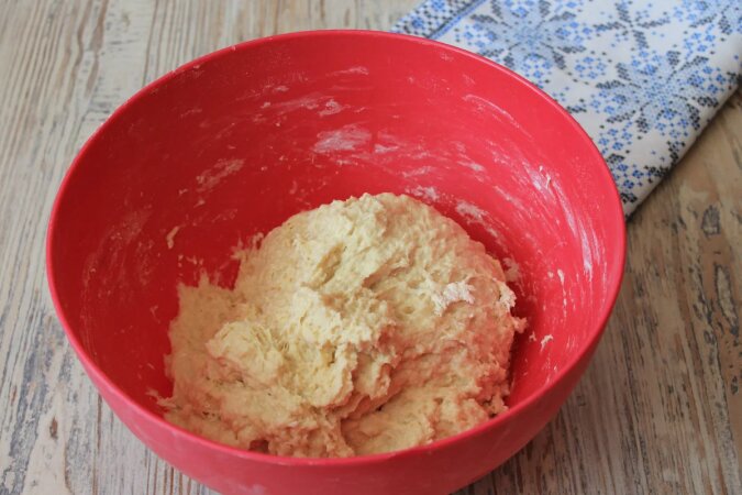 Jeśli uważasz, że ciasto jest nadal zbyt lepkie, możesz dodać trochę mąki. Przykrywamy miskę z ciastem i postawiamy w ciepłym miejscu, powinno urosnąć co najmniej dwukrotnie!