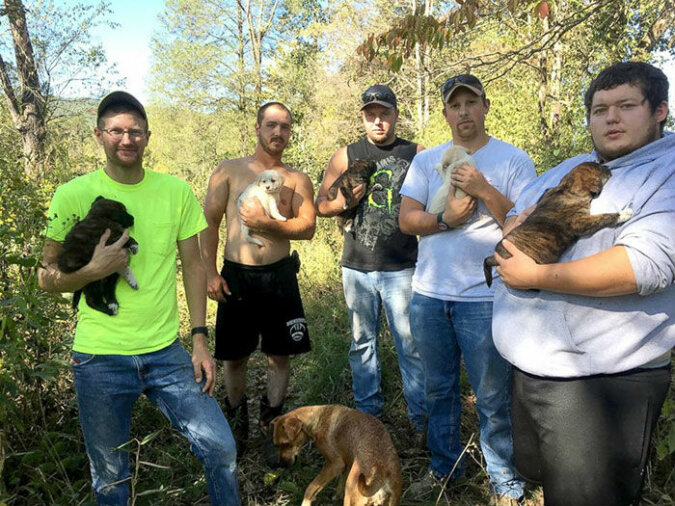 Siedem z nich wzięli po jednym szczeniaku, a jeden mężczyzna postanowił zaadoptować ich mamę.
