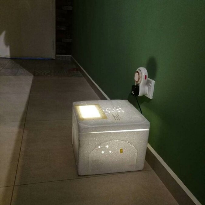 Kierując się ciekawością, zbudowała improwizowany inkubator ze styropianu i kilku żarówek i umieściła jajko w środku.