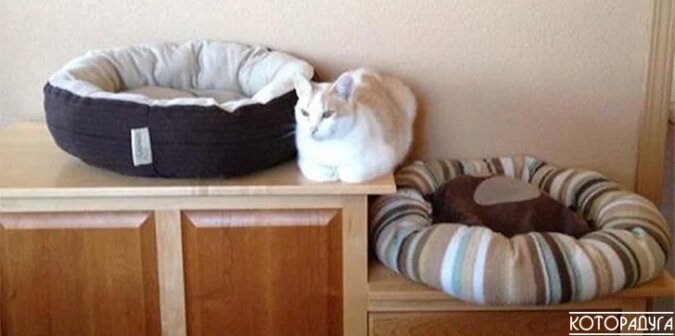 Kupili kotu najpierw jedno legowisko - śpi na komodzie. Kupili drugie legowsiko - kot śpi na komodzie. A jeśli kupisz dziesięć legowisk dla kota, czy nadal będzie spał na komodzie? Oczywiście! Kot sam wie, gdzie jest mu wygodniej spać i odpoczywać!