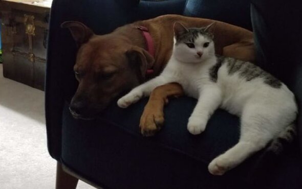 Z początku bała się mieszkać w domu i mieszkała na ulicy. Z czasem jednak zaprzyjaźniła się z psem. Zaczęli nawet spać w jednym legowisku – we dwójkę zawsze przyjemniej.