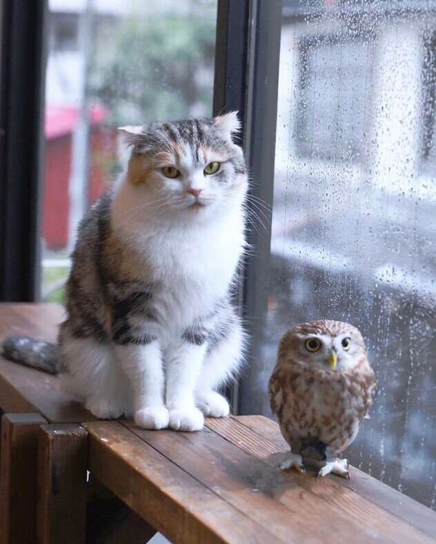 W Japonii modne jest odwiedzanie kawiarni, w których można wchodzić w interakcje z różnymi zwierzętami. Na przykład z kotami, królikami, kozami, sowami, jaszczurkami, a nawet pingwinami. W jednej z tych kocich kawiarni mieszka bardzo niezwykła para, która przyjaźni się od dzieciństwa.