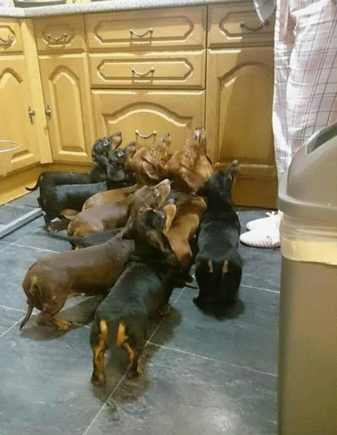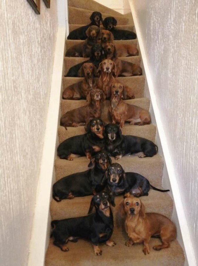 8 minut zajęło mu posadzenie na schodach 16 jamników i zrobienie zdjęcia
