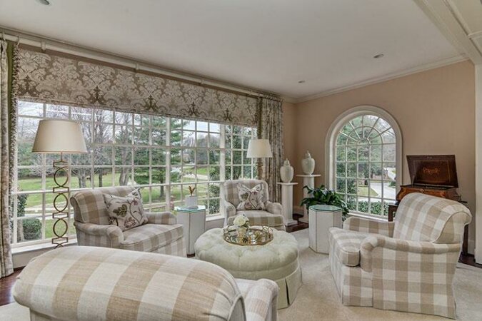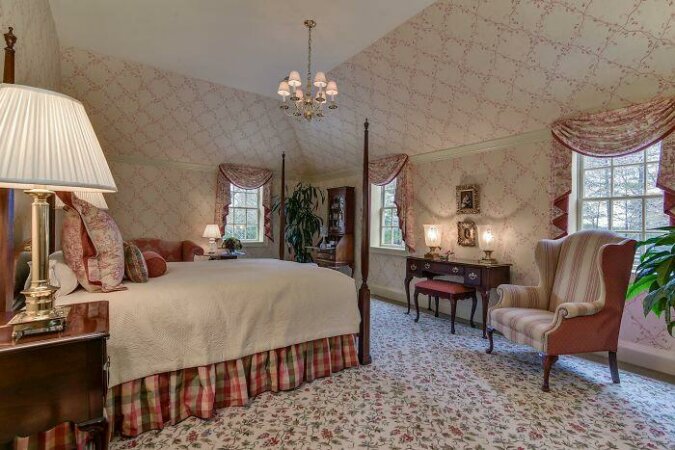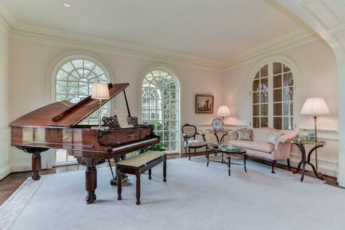 Wewnątrz znajduje się 7 sypialni, 11 łazienek, 10 kominków, 6 stref grzewczych, pensjonat z dwiema sypialniami, baseny kryty i odkryty oraz oświetlony kort tenisowy.