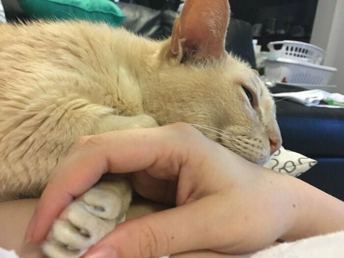 Jamie szybko zadomowił się w nowym miejscu i od tego czasu codziennie zaczął okazywać Sarze swoją miłość oraz wdzięczność. Kot okazał się tak czuły, że był gotów całymi dniami siedzieć w ramionach swojej właścicielki, pocierająć głową o jej dłonie. Często również lizał jej dłonie. Ale przede wszystkim dziewczyna była zaskoczona jednym przyzwyczajeniem zwierzaka domowego. Kot mogł zasnąć tylko wtedy, gdy ona trzymała w dłoni jego łapę. Bez tego rytuału Jamie cały czas był aktywny i nie chciał spać.