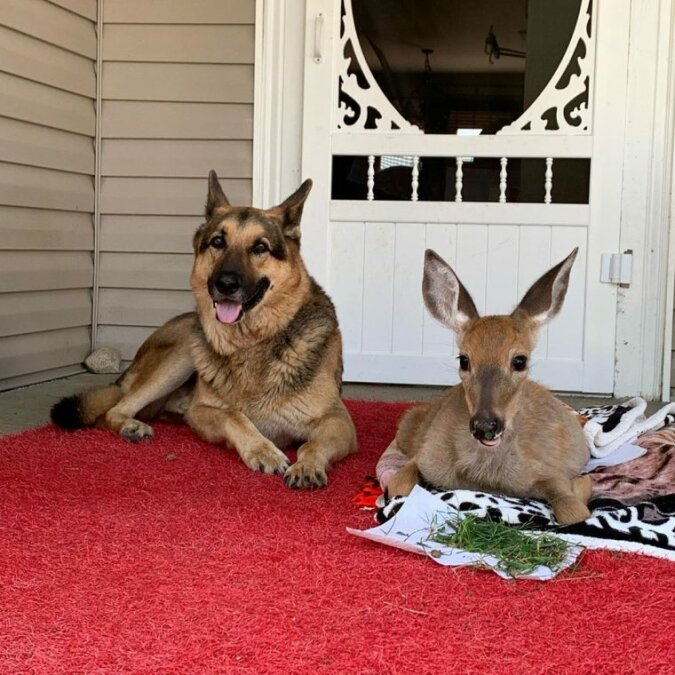 Głównym pomocnikiem właścicieli jest owczarek Serje („Sierżant”). Ze wszystkich zwierząt, pies był przepełniony miłością do jeleni. Serje nie tylko ich chroni, ale także o nich dba. Po raz pierwszy pies pokazał swoje powołanie jako nauczyciel sześć lat temu, kiedy Sheryl Stephen przyniosła do domu pierwszego uratowanego jelonka. Pies nie zostawił wówczas łaciatego dziecka, opiekował się nim jak matka. Sądząc po zdjęciach, młode odwzajemnia miłością tak dużemu i kudłatemu przyjacielowi.