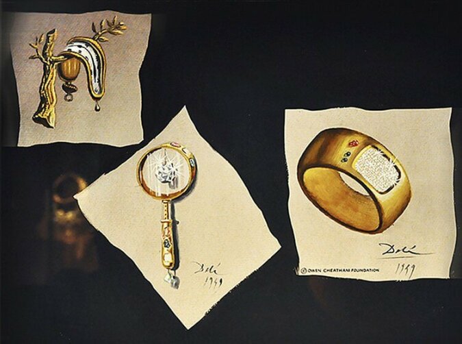 Według szkiców Dalego jubiler Carlos Alemani stworzył 37 przedmiotów biżuterii, a dwa kolejne powstały po śmierci artysty. W sumie na świecie jest 39 prac jubilerskich opartych na szkicach Salvadora Dali. Od początku wojny w 1941 roku, kiedy Dali mieszkał i pracował w Stanach Zjednoczonych, firma nowojorskich jubilerów „Alemany & Ertman” ożywia fantazje mistrza. Jedno po drugim rodzą się dzieła sztuki „pomalowane” materiałami szlachetnymi.