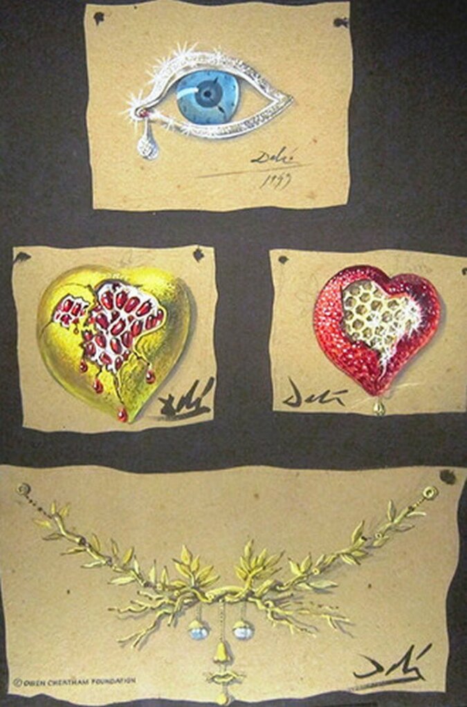 Wśród biżuteryjnych fantazji Salvadora Dali: ulubiony obraz surrealisty - „Słoń Kosmiczny” (1961), ekscytujące i zmysłowe „Rubinowe Usta” (1949), „Żywy Kwiat”, „Oko Czasu” z łezką w rogu, „Krwawiący Świat” (1953) i oczywiście „Królewskie Serce”, o które prosiła Gala. To prawda, że Dali poświęcił mechaniczne serce koronacji Elżbiety II.