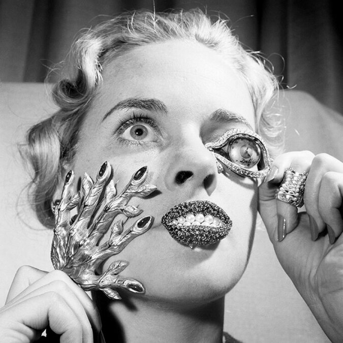 Modelka przedstawiająca biżuterię autorstwa Salvadora Dali