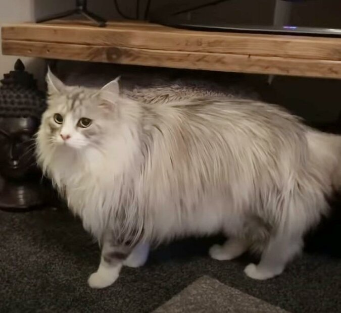 W następnej chwili podszedł do Mii, po czym odwrócił się do właściciela, który siedział obok, gotów na wszelki wypadek ochronić córkę przed kotem, po czym nagle wybiegł z pokoju. Milo był obrażony na ludzi za to, że w domu pojawił się nowy członek rodziny!