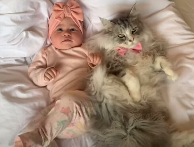 Leżą razem, czasami śpią, często się przytulają, a mruczek szczęśliwie przychodzi żeby porozmawiać! Tak, nie od razu udało mu się zakochać w nowonarodzonej dziewczynie, ale teraz dobrze się dogadują. I wyglądają świetnie, prawda?