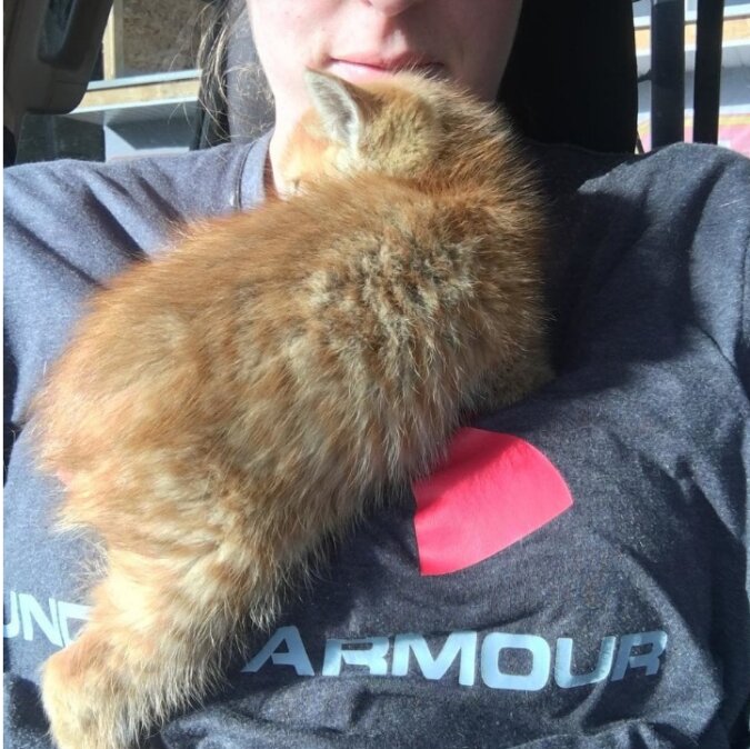 Zbawicielka zabrała go do samochodu, położyła sobie na kolana i rudzielec powoli się uspokoił i przyzwyczaił do nowych zapachów. Może i nie był do końca zadowolony, natomiast uciekać nie zamierzał. Najwidoczniej przyznał Kelsy przywództwo. Prawdopodobnie to było jego pierwsze doświadczenie w relacjach z człowiekiem.