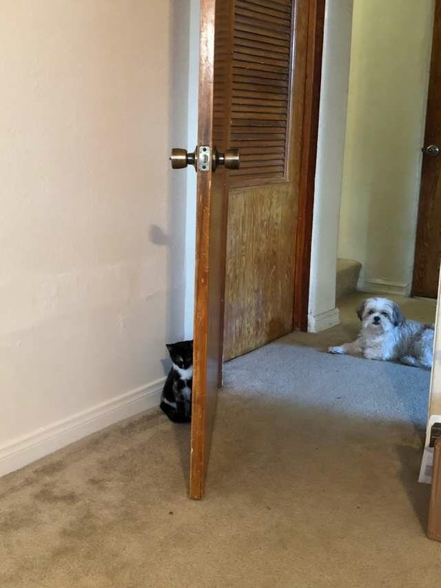 W nowym miejscu dla Momo wszystko było nieznane i przerażało ją, przerażony był też Brandon, a najbardziej jego pies. Kiedy mężczyzna uwolnił Momo z pułapki, kocię uciekło pod stolik nocny i zaczęło syczeć na każdego, kto do niego podchodził.
