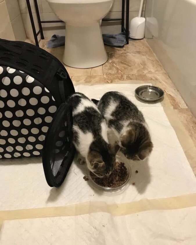 Matka kotka była bardzo nieśmiała, nie mogli jej złapać, ale para zabrała kocięta. Przez kilka miesięcy opiekowali się dziećmi, po czym znaleźli dla nich nowych właścicieli. Przez cały ten czas dziewczyna czekała na powrót matki.