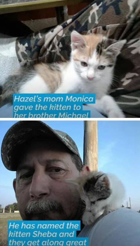 Zdezorientowana kotka prawdopodobnie zastanawiała się, kim jest jej wybawca i dokąd ją zabiera. Wtedy nie wiedział, że zmierza w kierunku swojego nowego szczęśliwego życia. Wkrótce Hazel i kotka wrócili do domu. Jednak maluchowi trudno było wspiąć się po stopniu, więc Hazel złapała ją za kark i zaniosła do środka. Po tym kotka poczuł się jak w domu.