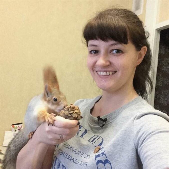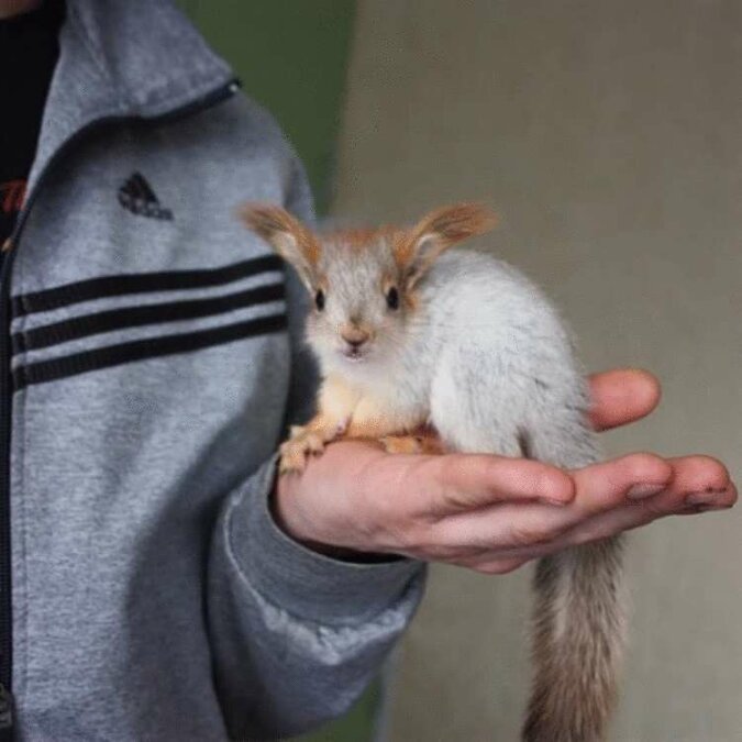 W Nowosybirsku znaleźli małą wiewiórkę z parku, matkę nie mogłi znaleźć, a ona potrzebował domu i opiekuna. Dziewczyna Elena zobaczyła wiadomość w sieciach społecznościowych i postanowiła zabrać dziecko do domu.
