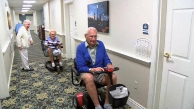 John i Phillis zaczęli się razem relaksować i spożywać obiady na łonie natury. Mieszkając w domu opieki, oboje używają specjalnych wózków elektrycznych, aby ułatwić sobie poruszanie. W końcu korytarze w tym budynku są dość długie.
