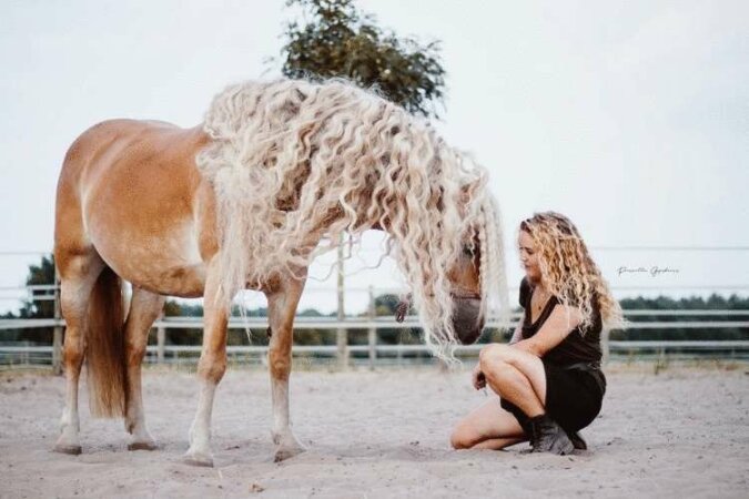 Te dwoje nie potrzebują księcia - jest już księżniczka i koń, a raczej klacz o imieniu Storm. I o Boże, jaka ona jest wspaniała! Jej 24-letnia właścicielka Naomi Becker też, ale spójrz tylko na tę grzywę! Rasa Storm to haflinger, która jest niewielka i ma bardzo, BARDZO piękną głowę. Ich grzywa zwykle zwija się, gdy są młode, ale potem się prostuje. Storm jest u zarania sił, a jej loki o długości metra sprawiają, że otaczającym ludziom zapiera dech w piersiach!