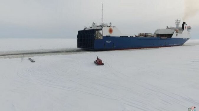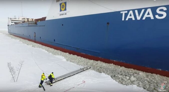 Wiadomo, że statek towarowy płynął do portu Oulu. Lód miał około pół metra grubości.