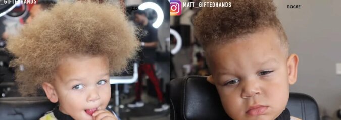 Dziecko ma zaledwie dwa lata, do stylistów przyprowadziła go mama. Chociaż nie jest jeszcze zbyt dobry w mówieniu, wszystko rozumie. Chłopiec ma jeden problem: ma bardzo kręcone włosy, a jego głowa wygląda jak dmuchawiec.