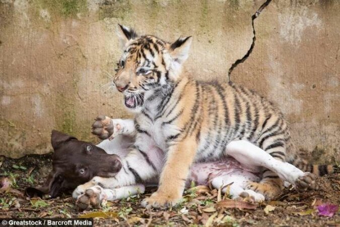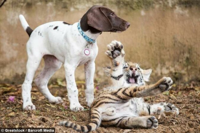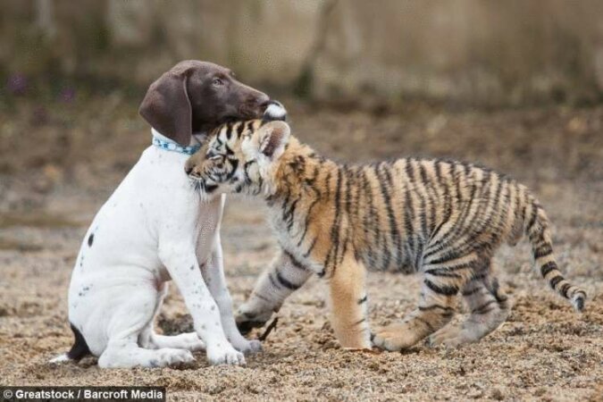 Dobrym przykładem jest historia tygrysa bengalskiego o imieniu Hunter i krótkowłosego szczeniaka o imieniu Chelsea. Chociaż wcale nie są do siebie podobni, te dwa młode nie tylko się dogadały, ale zostały najlepszymi przyjaciółmi! To takie urocze!