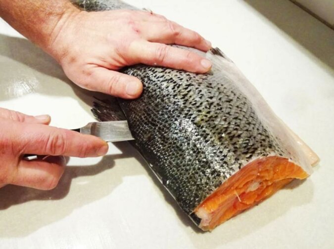 Dalej zaczynają się zasady krojenia i solenia ryb. Nóż powinien być ostry, świeżo naostrzony, aby idealnie ciąć, a nie szarpać czerwoną rybę. Aby uzyskać lepszy smak, możesz posmarować ostrze gałką muszkatołową.