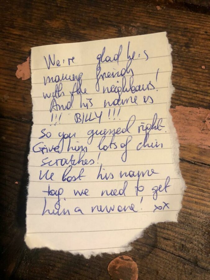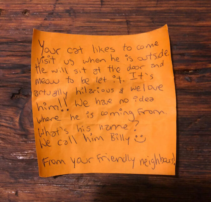 Pierwsza wiadomość. Napisano w niej, że sąsiad nie znał imienia kota i intuicyjnie ochrzcił go Billy.