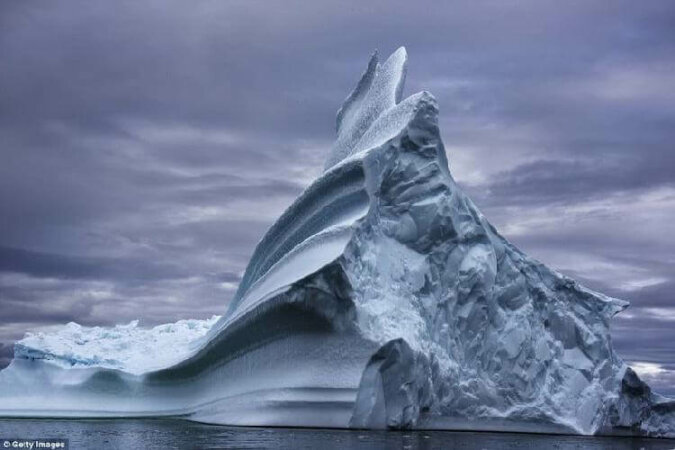 Oryginalna góra lodowa na Grenlandii, „uformowana” przez burze