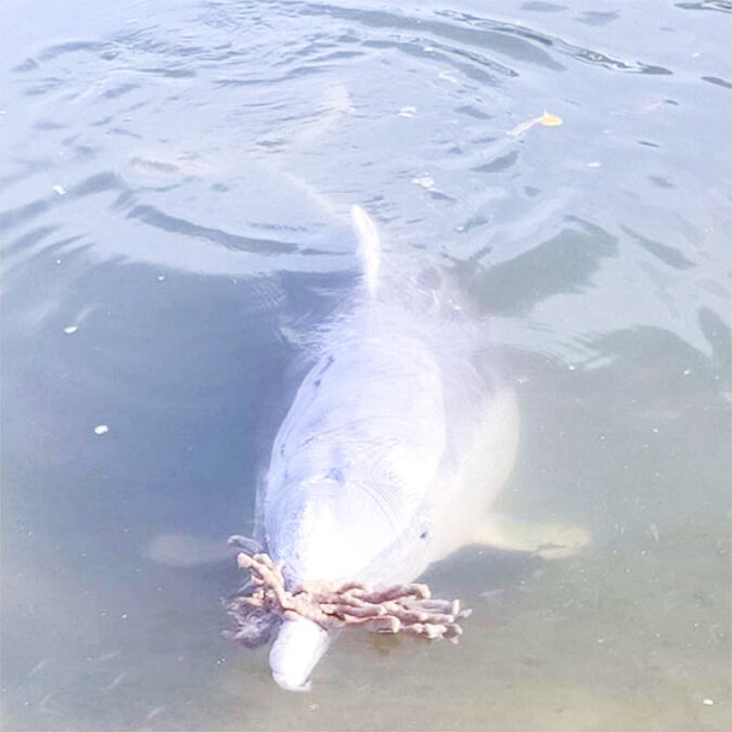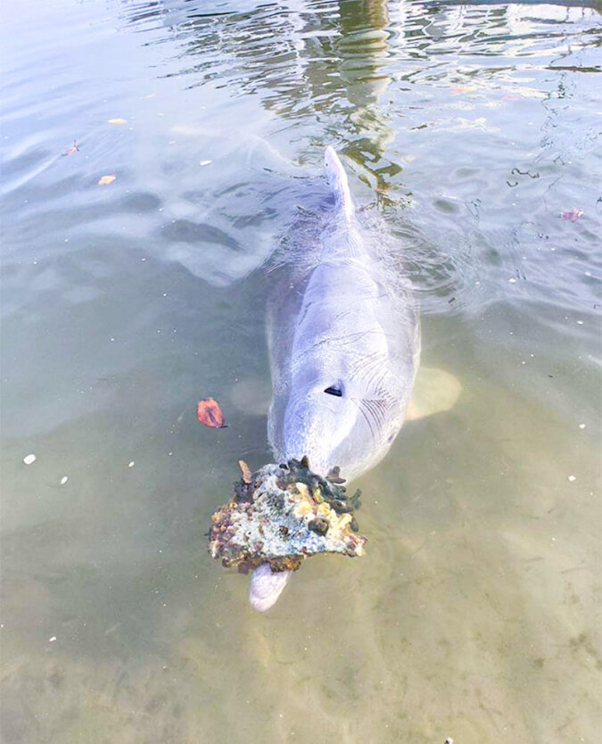Korale, butelki i muszle to najpopularniejsze przedmioty, które delfin wyciąga z oceanu, by zadowolić pracowników Centrum.