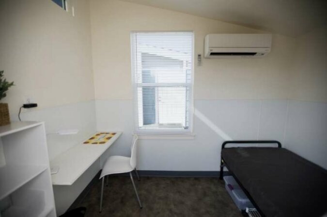 Te domy są naprawdę bardzo małe - tylko siedem metrów kwadratowych. Ale jest osobny prysznic i łazienka. Latem chłód zapewni klimatyzator zainstalowany w domu. Warunki życia są całkiem do przyjęcia. Są meble i pościel.