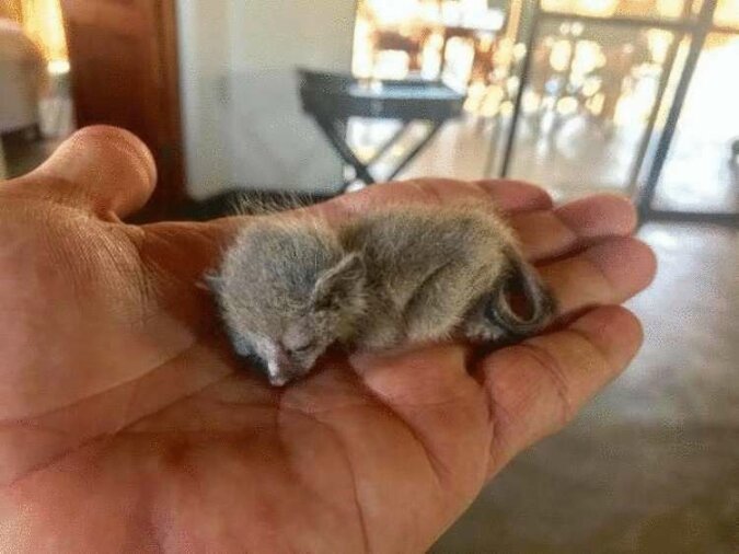 Młody człowiek ostrożnie wziął w ramiona małpkę, a następnie położył ją na kuchennym stole, aby matka ją zobaczyła.