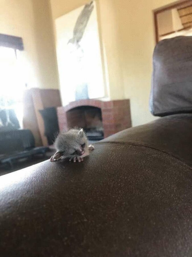 Nisshans pracował w domu przy komputerze, kiedy usłyszał przeraźliwy krzyk, a potem uderzenie w sofę. Facet poszedł zobaczyć, co się stało, i znalazł młode leżące na podłodze.
