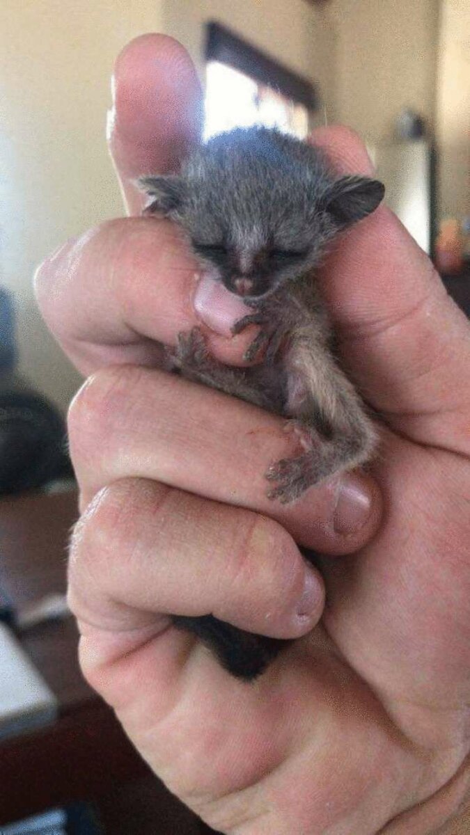 Młody człowiek sprawdził, czy ze zwierzęciem wszystko jest w porządku, a jednocześnie dobrze przyjrzał się niezwykłemu zwierzęciu. To był pierwszy raz, kiedy facet zobaczył dziecka buszu tak blisko.