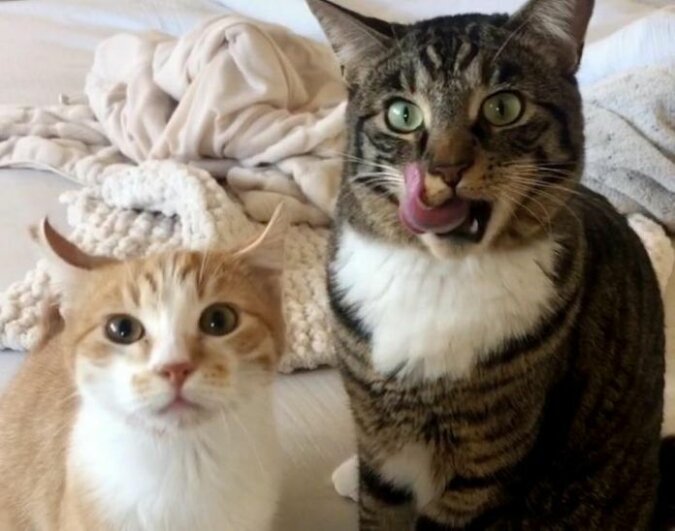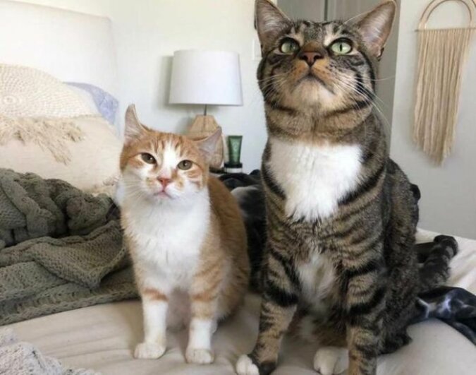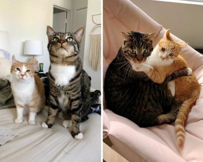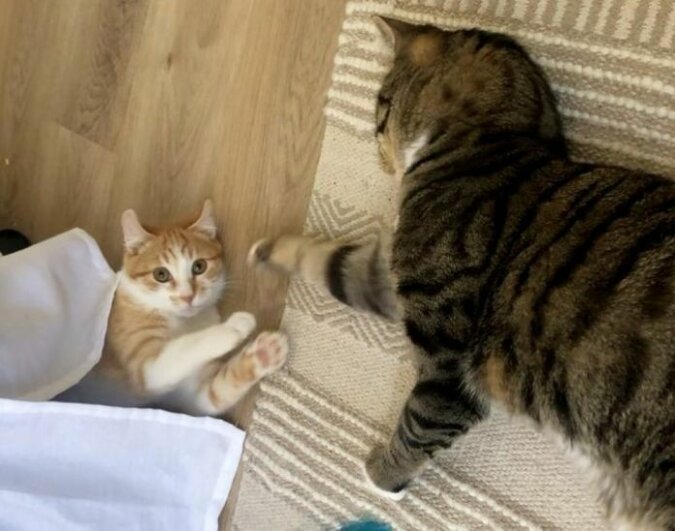 Kotek podebrany z ulicy zdecydował zdobyć serce domowego kota.