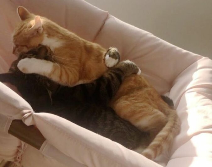„Marley stara się nadążyć za energicznym kociakiem. Grają wystarczająco dużo, przytulają się i liżą”.