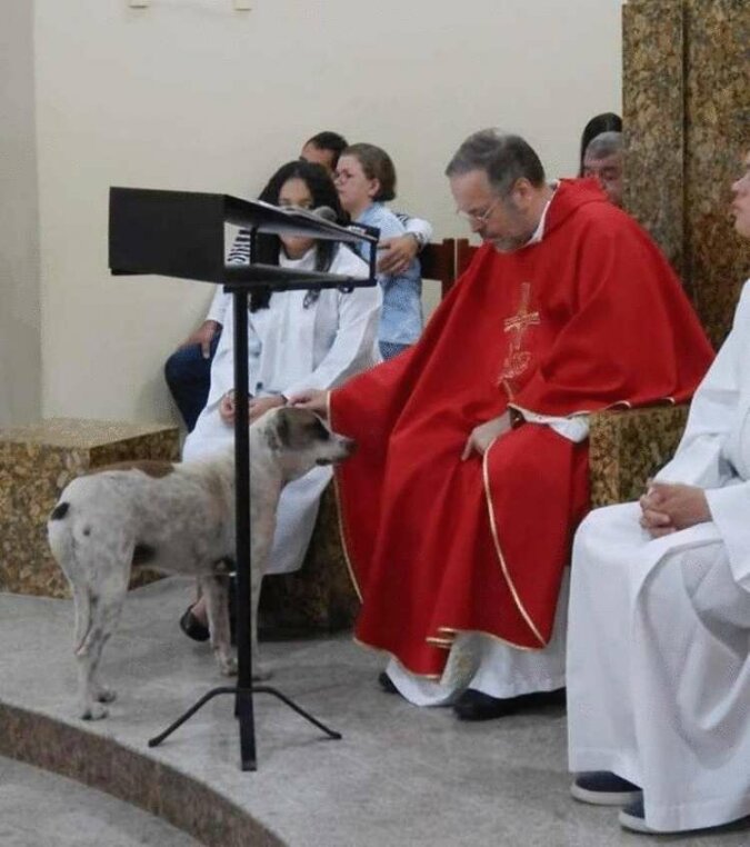 Parafianie zauważają, że liczba psów ulicznych w okolicy dramatycznie spadła od czasu przybycia księdza do tego kościoła. Ksiądz nie tylko pokazuje zwierzęta podczas nabożeństwa, ale także publikuje ich zdjęcia w sieci. Ludzie popierają inicjatywę ojca, wierząc, że dobro powraca.