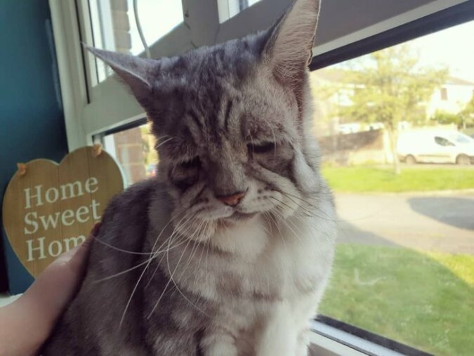 Zdjęcie z tym kotem stało się jednym z najpopularniejszych w Internecie. Wydaje się, że to najsmutniejszy kot na całym świecie, ale wcale tak nie jest. Po prostu Toby ma rzadką chorobę.