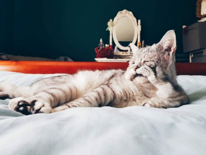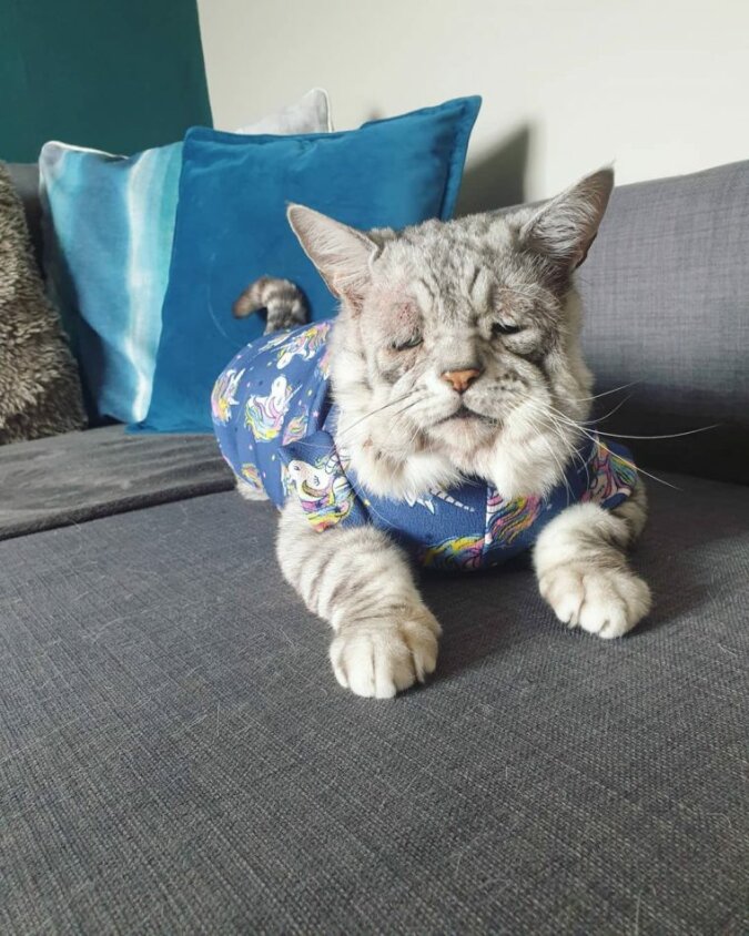 A Toby bardzo kocha, gdy drapie się go po brzuchu, a nawet o to pyta, zaczynając walić w niego łapami. Ale ogólnie kot prowadzi zwykłe życie i jest całkiem szczęśliwy. Jak jego „brat” Quinton. Dobrze radzi sobie bez zębów.