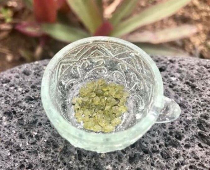 Najczęściej mieszkańcy znajdują kamienia szlachetne o niedużych rozmiarach bezpośrednio w krzakach zastygłej lawy wułkanicznej, ale czasami kryształy dosłownie spadają z nieba, są bowiem w czystej postaci. Istnieją dowody na to, że niektóre miejsca są po prostu zasypane kamieniami szlachetnymi, jak po nawalnych opadach deszczu. Te przezroczyste kryształy są rodzajem chryzolitu.