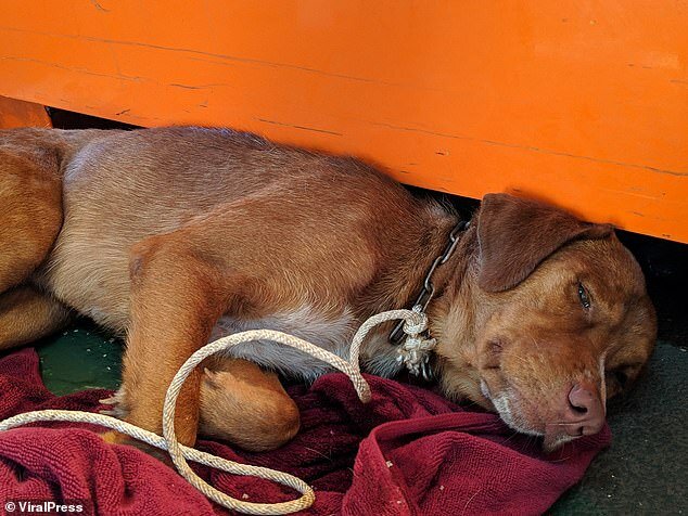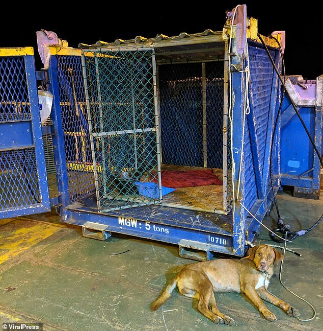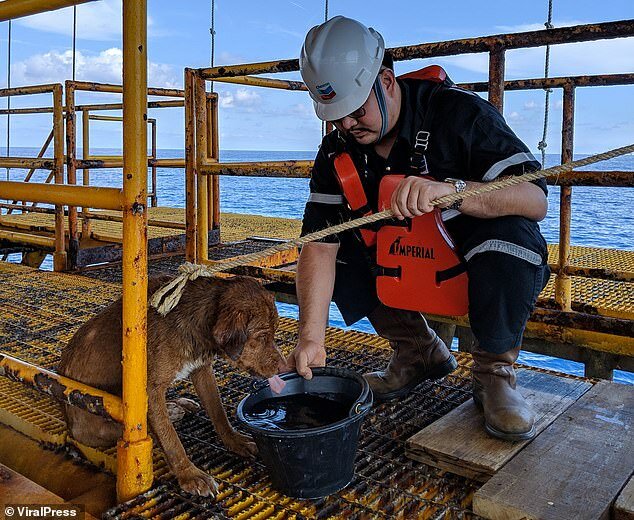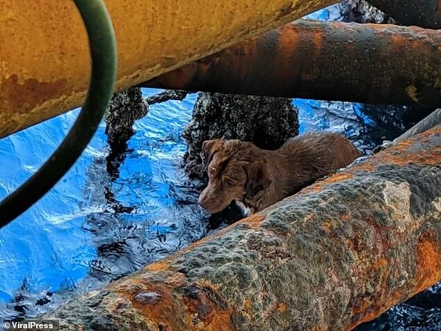 Robotnicy opuścili liny, podnieśli psa. Zwierzak zachowywał się cicho, nie szczekał, prawie się nie ruszał, tylko łapczywie pił wodę. Było oczywiste, że zwierzę było wyczerpane, zdumiewające, jak wytrzymało tyle czasu na morzu. W ciągu kilku dni mężczyźni zaspawali obszerną klatkę, w której pies mógł pozostać do przybycia statku ratunkowego. Pies przez cały czas zachowywał się spokojnie, tylko żałośnie patrzył na ludzi. Nikt nie wie, co musiało przeżyć biedactwo...