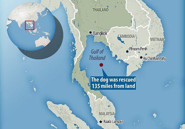 Zatoka Tajlandzka jest duża, nie głęboka, jednak nikt nie wykazywał chęci przepłynięcia jej. Z tego powodu pracownicy platformy wiertniczej byli zaskoczeni widokiem psa znajdującego się w wodzie. Nie wiadomo jak się tam dostał, bo musiał przepłynąć 200 km!