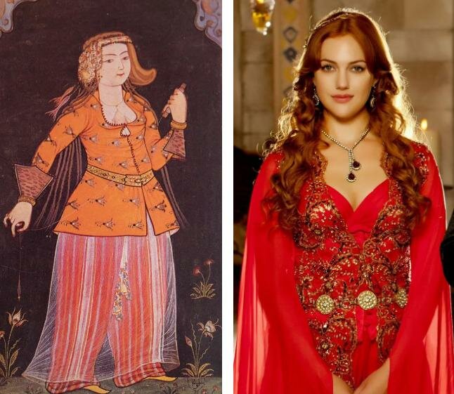 Dlatego Hurrem Sultan, podobnie jak inne kobiety z haremu, nosiła najprawdopodobniej szerokie spodnie alladynki, luźną długą koszulę z szerokim paskiem. Na wierzch, aby wyjść na zewnątrz, kobiety musiały założyć długą szatę.