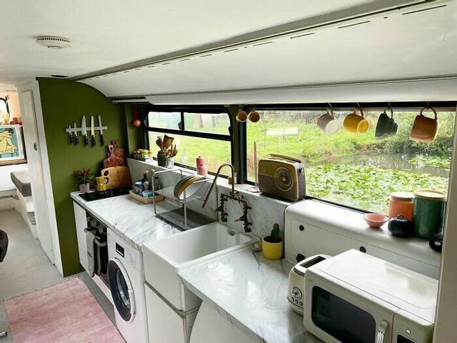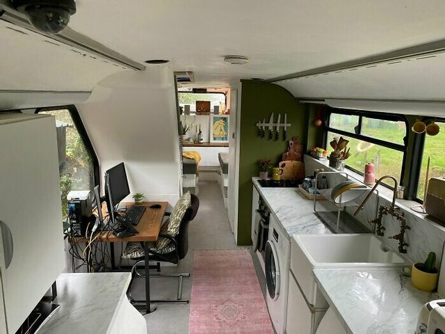 Para kupiła stary piętrowy autobus za 3000 dolarów i była w stanie przerobić go w luksusowe mieszkanie z kuchnią, łazienką i garderobą, a nawet biurem.