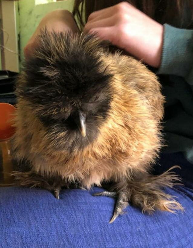 Później właściciel tego zdjęcia wyjaśnił, że to tylko kurczak... Nie pamięta nazwy tej rasy, ale w komentarzach powiedziano mu, że to chiński kurczak jedwabny, który się wabi Silkie. Te ptaki to bardzo urocze i zabawne stworzenia, ale niestety bardzo głupie... Muszą jeść i pić z małych i płytkich miseczek, bo w głębszych potrafią się udusić... Zabawne.